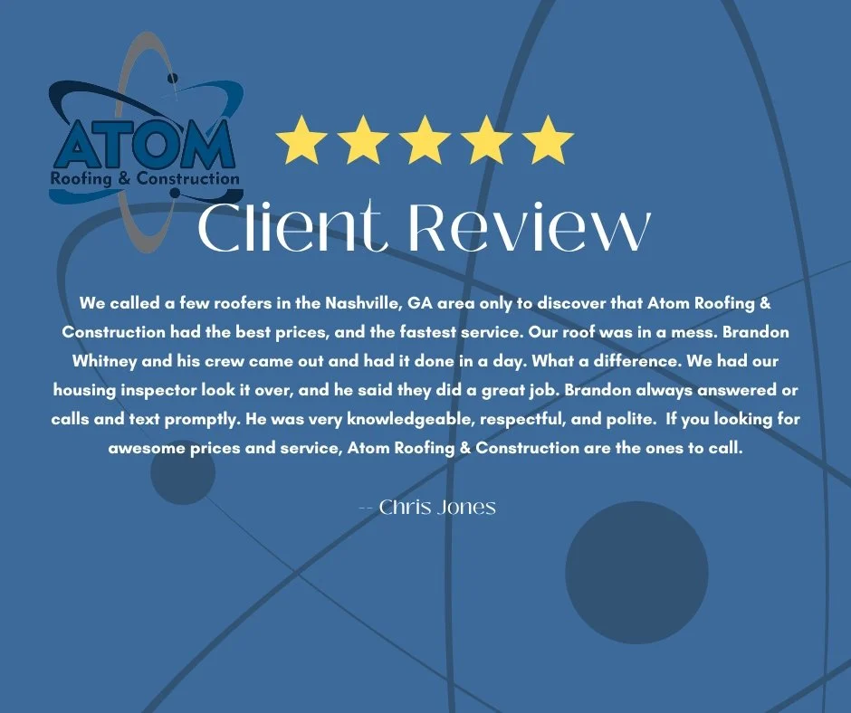 Quick, Easy, & Accurate Quotes in 60 Seconds! No waiting, no hassle. Our 60-second quoting tool gives you an instant estimate for your roofing needs. Simply answer a few quick questions, and we'll provide you with a fast, reliable quote — all from the comfort of your home. Get started now and see why homeowners across South Georgia and Coastal Georgia trust Atom Roofing & Construction for their roofing solutions!